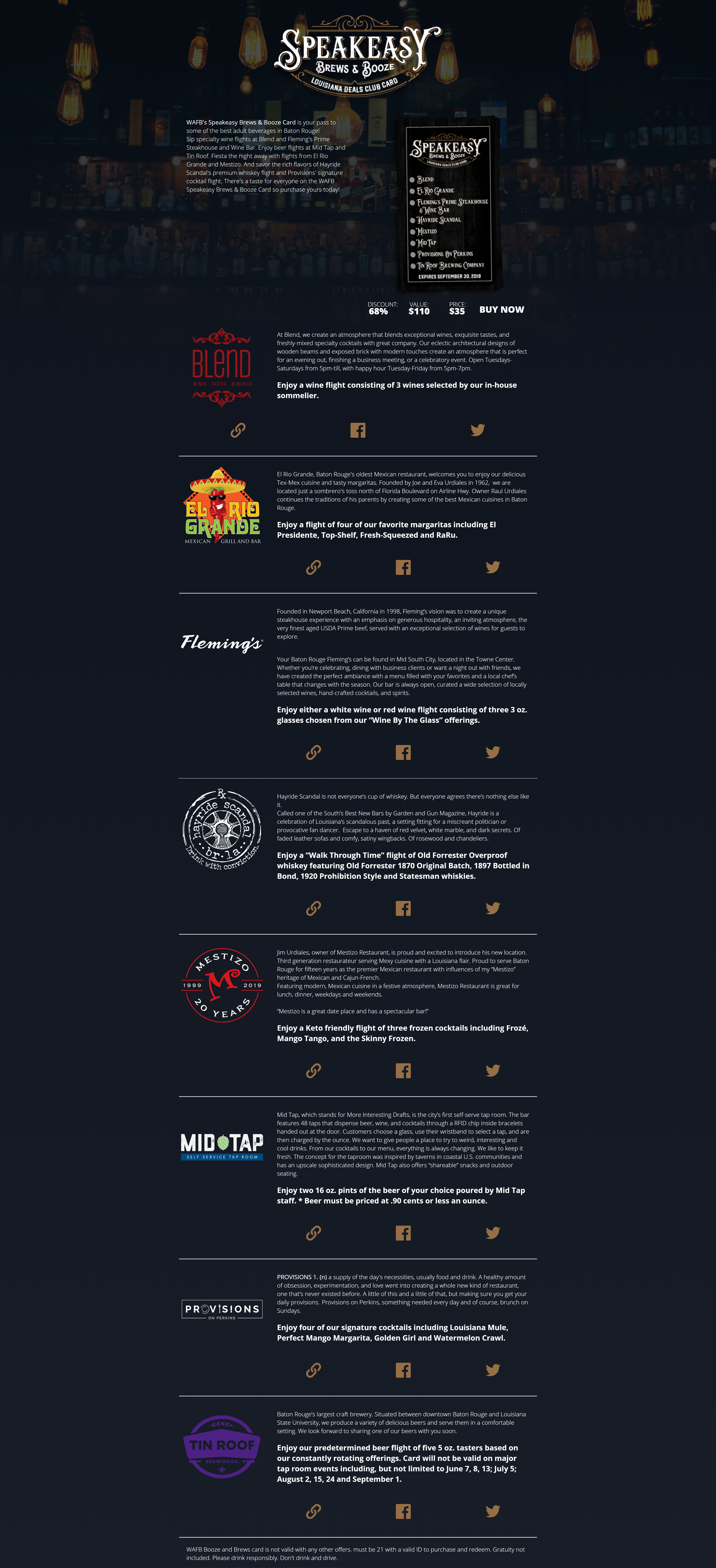 Branding, logo, collateral and cards for WAFB's newest deal card, The Speakeasy Booze and Brews card.
